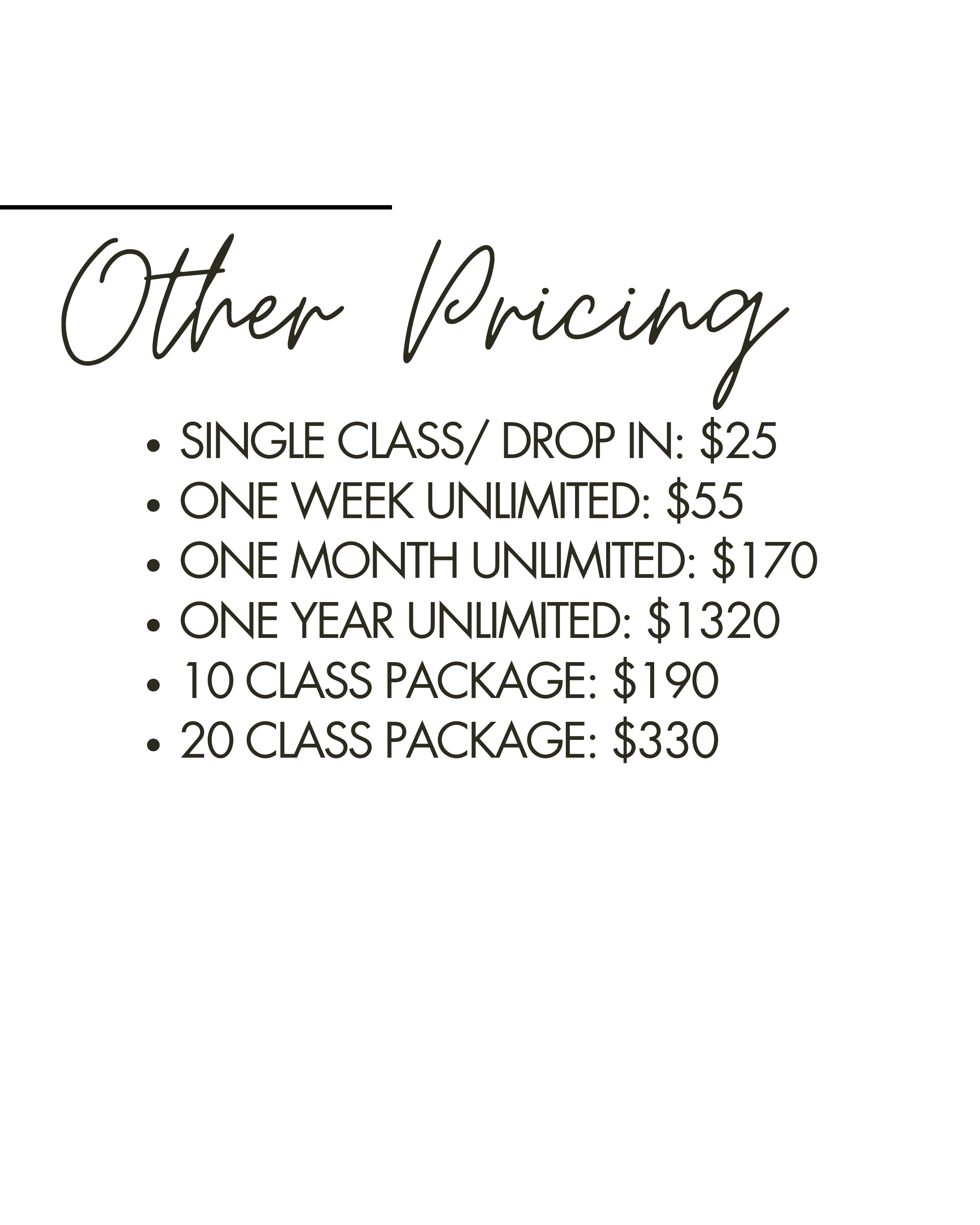 *We offer special pricing for students, yoga and fitness instructors, and active military. Students and military must have an ID. Yoga and fitness instructors must be on a current class schedule. All discounted memberships/drop-in have to be purchased in studio or by emailing mindbodyhaus@gmail.com.